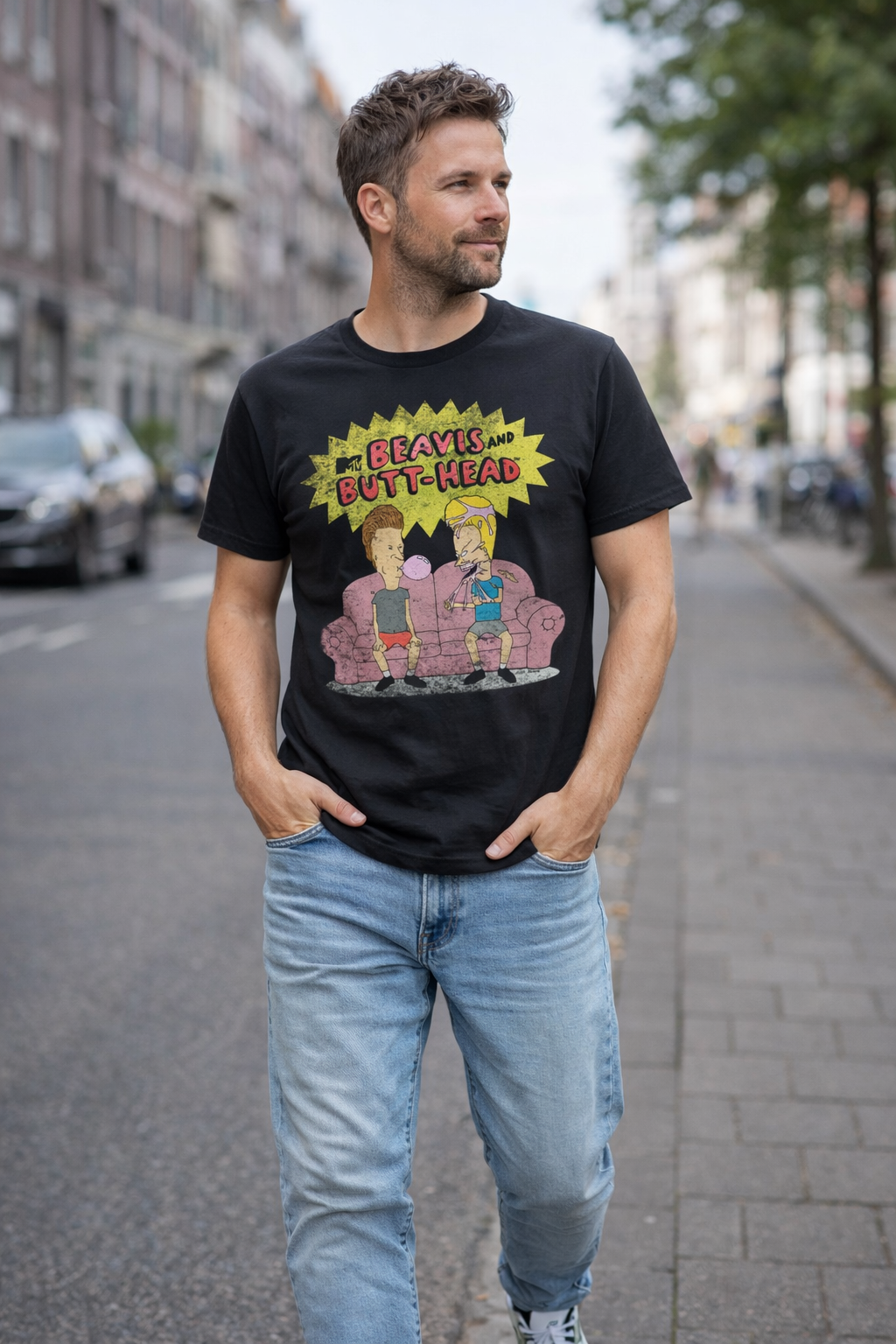 Voor fans van pure 90s nostalgie is dit officiële Beavis and Butt-Head T-shirt een schot in de roos. De zwarte basis, vintage look en iconische bankscène geven dit shirt precies die relaxte oldschool vibe waar je meteen blij van wordt.